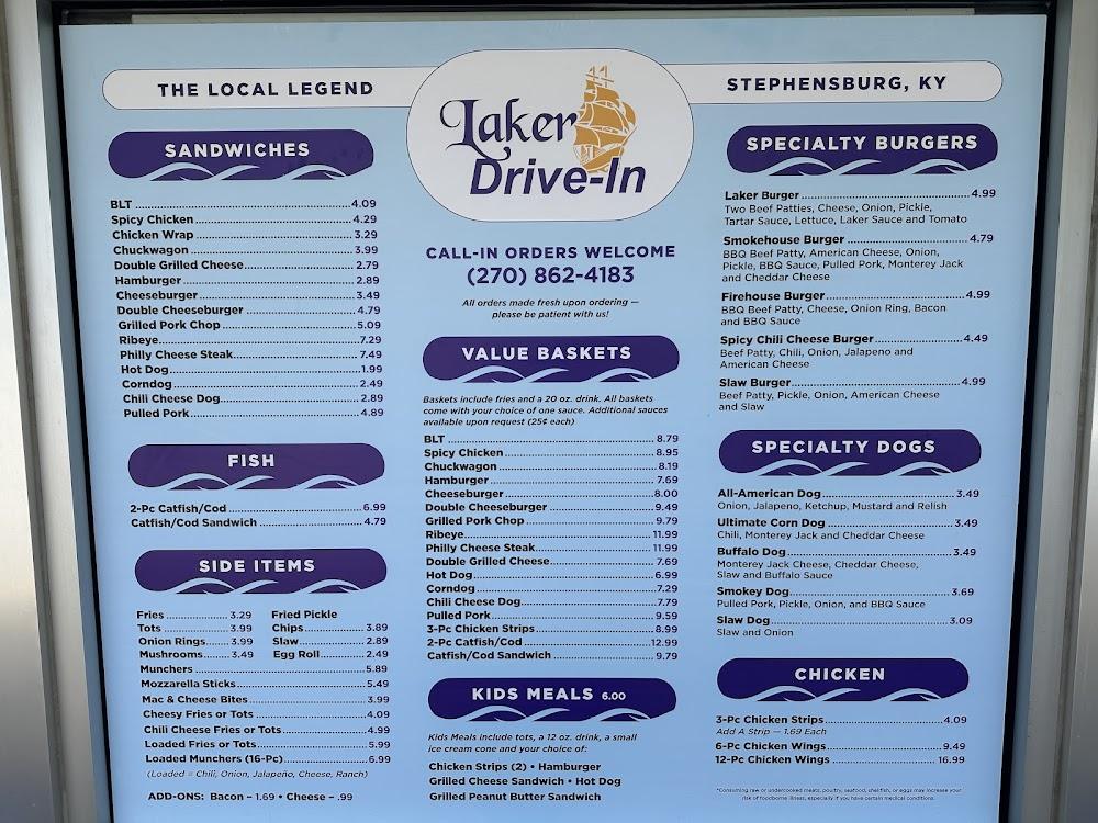 Welcome to Laker Drive In, your go-to destination for delicious hamburgers and mouthwatering desserts in Stephensburg, KY! Located at 10585 Leitchfield Rd, we offer a casual and friendly atmosphere perfect for solo diners, families, and groups. Enjoy a variety of traditional dishes, including our famous milkshakes and delectable cheeseburgers, available for dine-in, takeout, or delivery. With ample parking and wheelchair accessibility, visiting Laker Drive In is convenient for everyone. Join us for lunch or dinner and savor local specialties in a relaxed, historic setting—your taste buds will thank you!